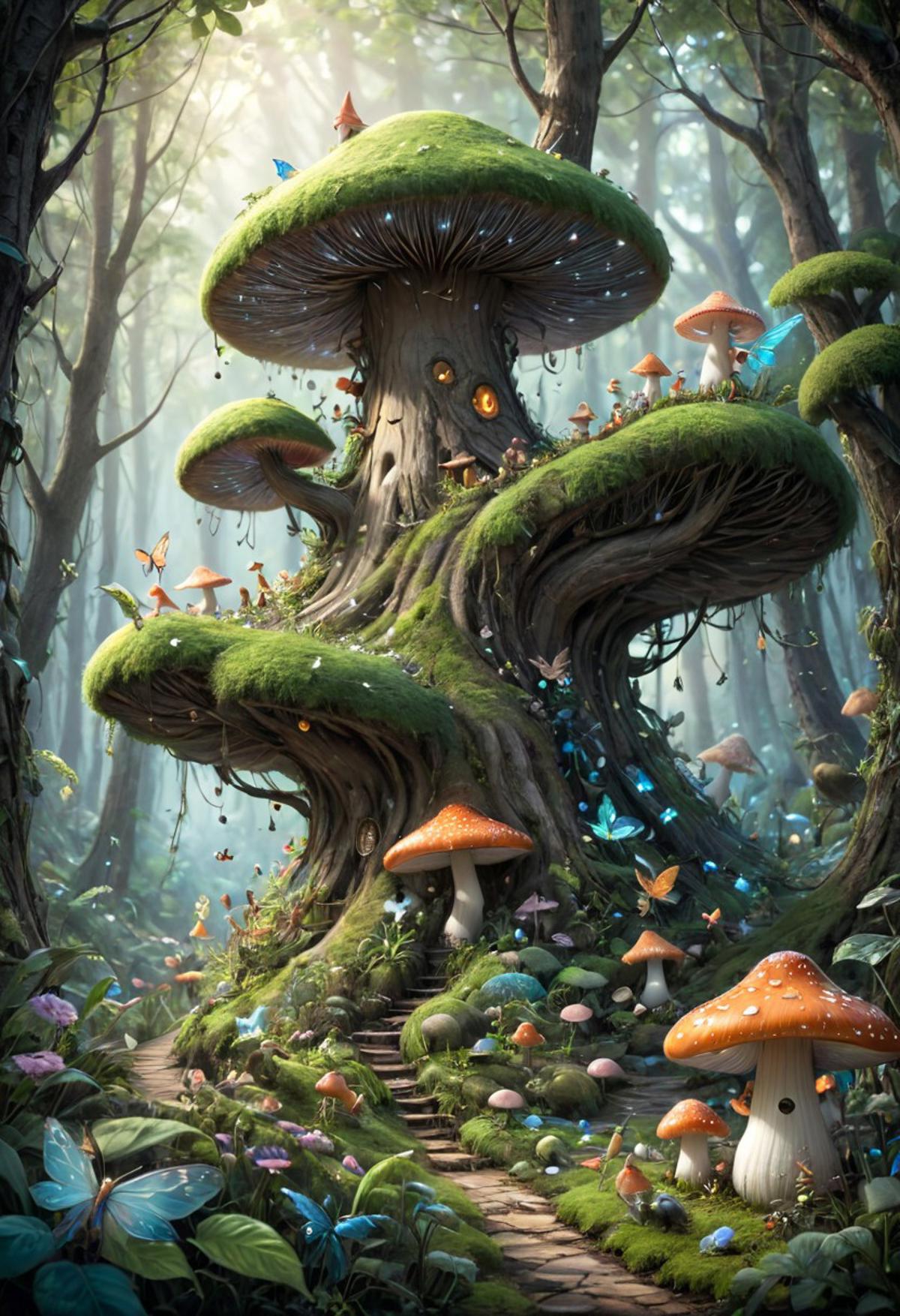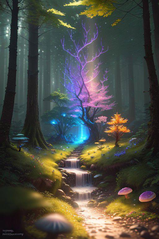 masterpiece best quality high qualityextremely detailed CG unity 8k wallpaper An enchanting and dreamy scene of a fantasy forest with towering trees glowing mushrooms and hidden fairy glens creating a sense of mystique and enchantment artstation digital illustration intricate trending pastel colors oil paiting award winning photography Bokeh Depth of Field HDR bloom Chromatic Aberration Photorealisticextremely detailed trending on artstation trending on CGsociety Intricate High Detail dramatic art by midjourney
